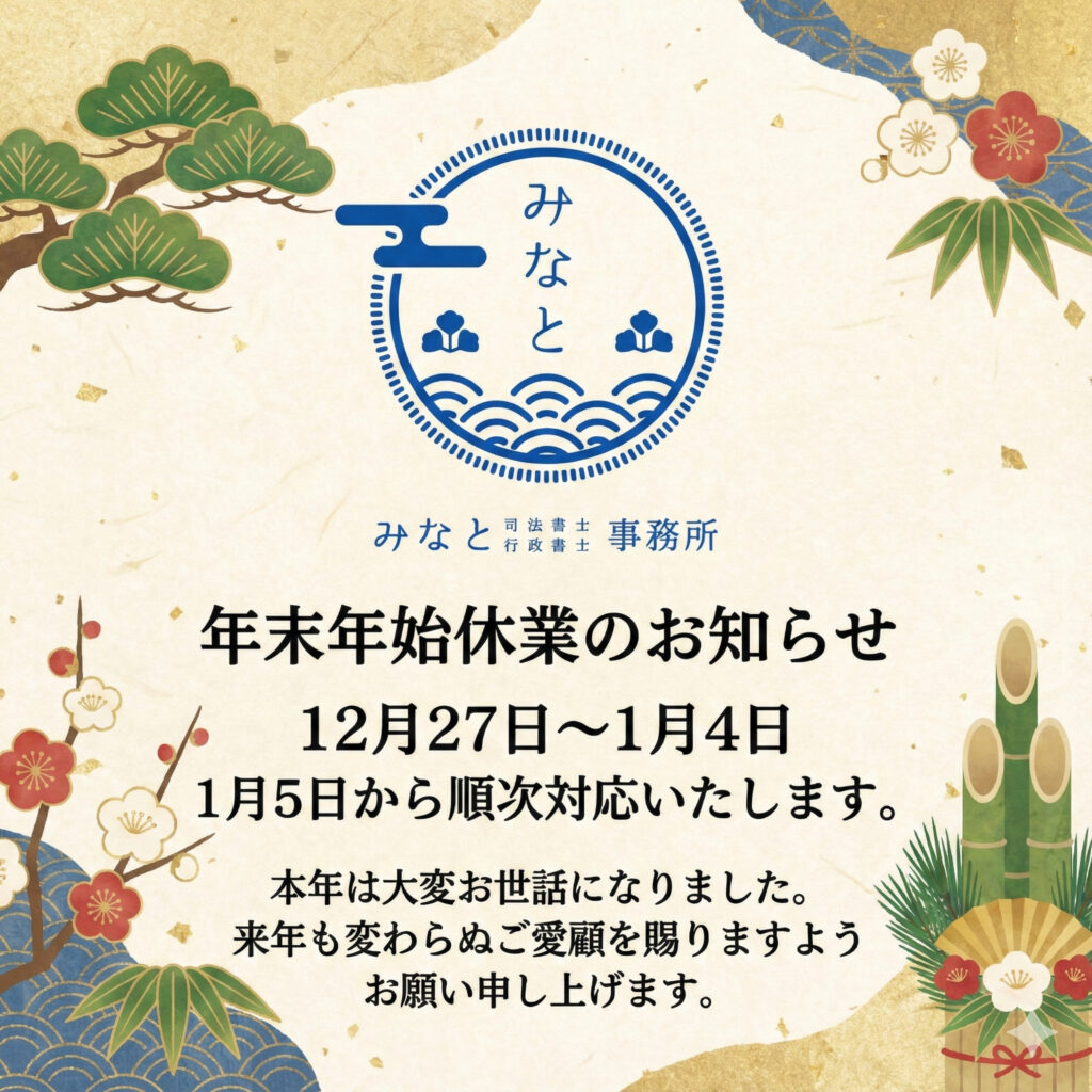 誠に勝手ながら、当事務所は下記の日程を年末年始休業とさせていただきます。