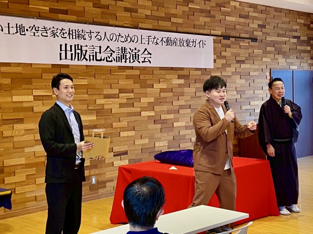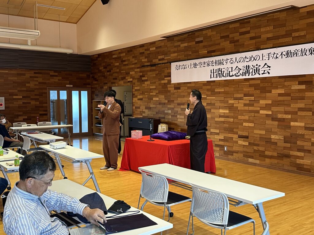 10月4日(土)、川之石地区交流拠点施設みなせにて、拙著『上手な不動産放棄ガイド』の出版記念講演会を開催いたしました。