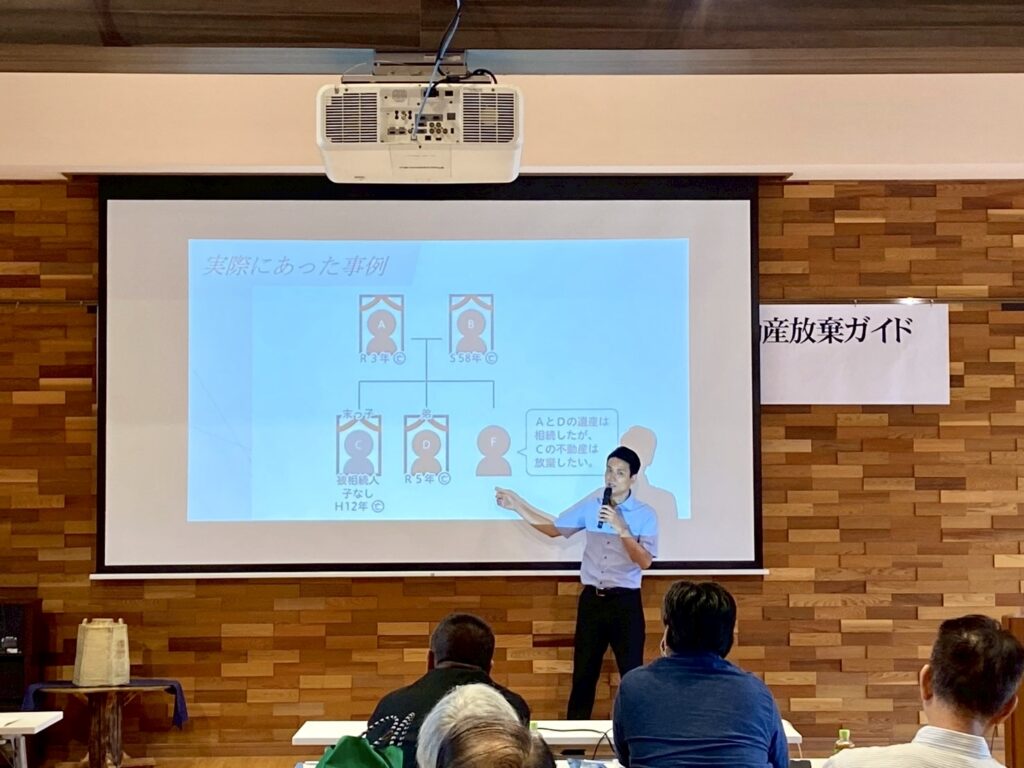 講演では、実例を交えながら「不動産を相続する際に直面する課題」や「上手に手放すための方法」についてお話しさせていただきました。さらに、パネルディスカッションでは、行政・弁護士・解体業者・不動産業者といった各分野の専門家の視点から、具体的な処理の方法や今後の対策についてご紹介することができました。
